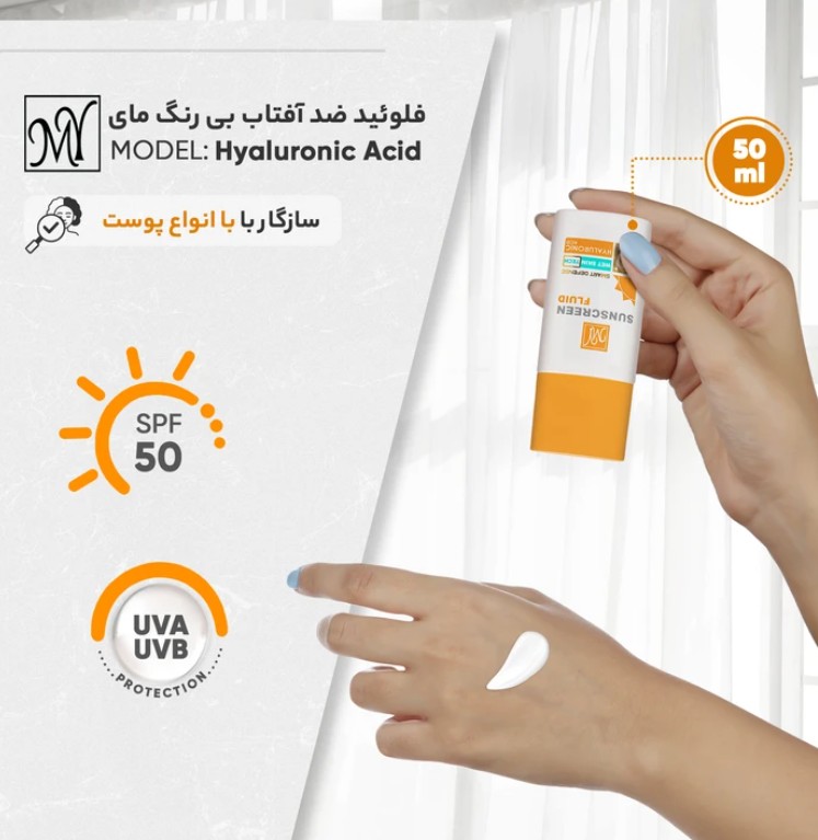 فلوئید ضد آفتاب SPF50 مای با بافت سبک و بیرنگ، محافظتی کامل در برابر اشعههای UVA و UVB فراهم میکند و با ترکیبات آبرسان، پوست را لطیف و شاداب نگه میدارد. مناسب برای انواع پوست، حتی پوستهای حساس